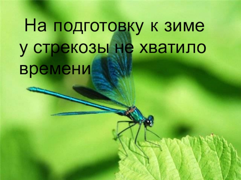 Слайд 23 На подготовку к зиме у стрекозы не хватило времени