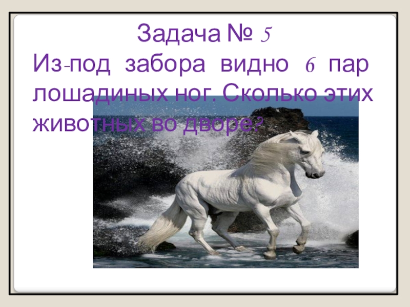 Из-под забора видно 6 пар лошадиных ног. Сколько этих