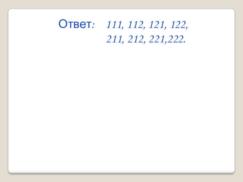 Слайд 27 Ответ: 111, 112, 121, 122,