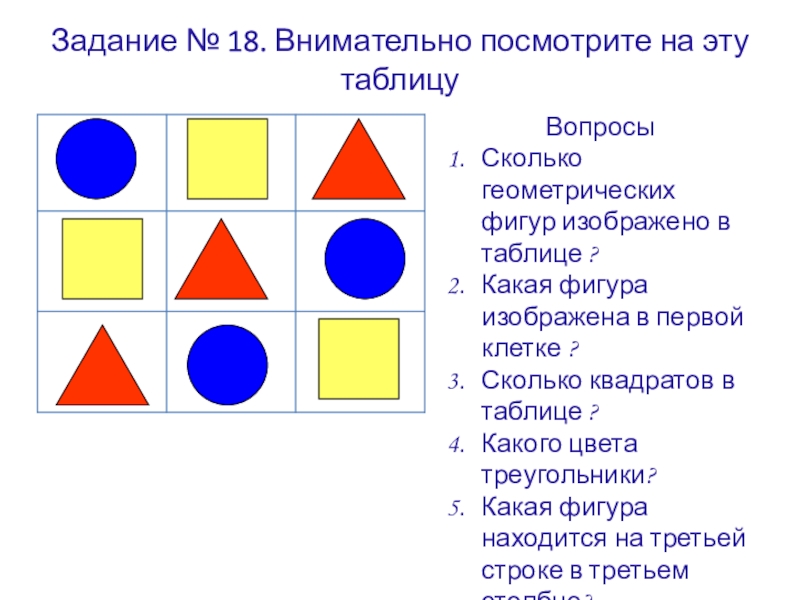 Слайд 46Задание № 18. Внимательно посмотрите на эту таблицу