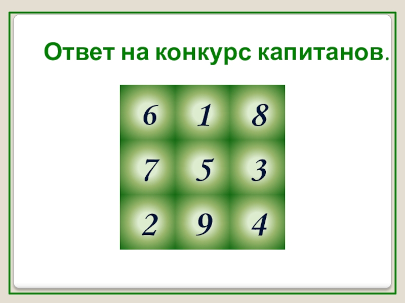 поставлены числа 1,2,3.и5. Расставь в свободных клетках числа 4,6,7,8,9 так, чтобы сумма чисел в каждом столбце и в каждой строке равнялась 15.