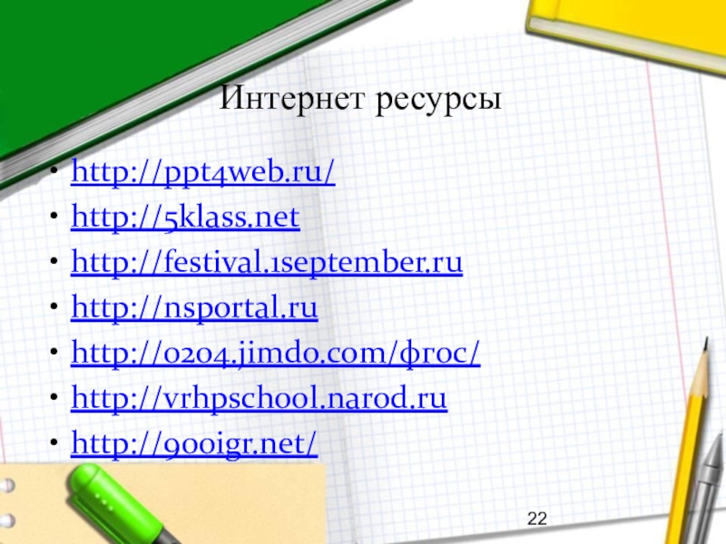 Это сайт презентаций, где можно хранить и обмениваться своими презентациями, докладами, проектами, шаблонами в формате PowerPoint с другими пользователями. Мы помогаем школьникам, студентам, учителям, преподавателям хранить и обмениваться учебными материалами.