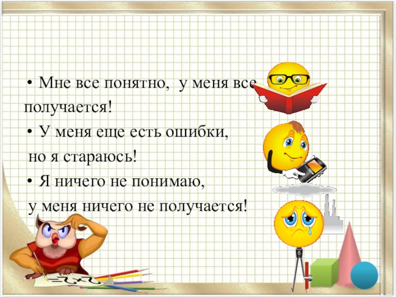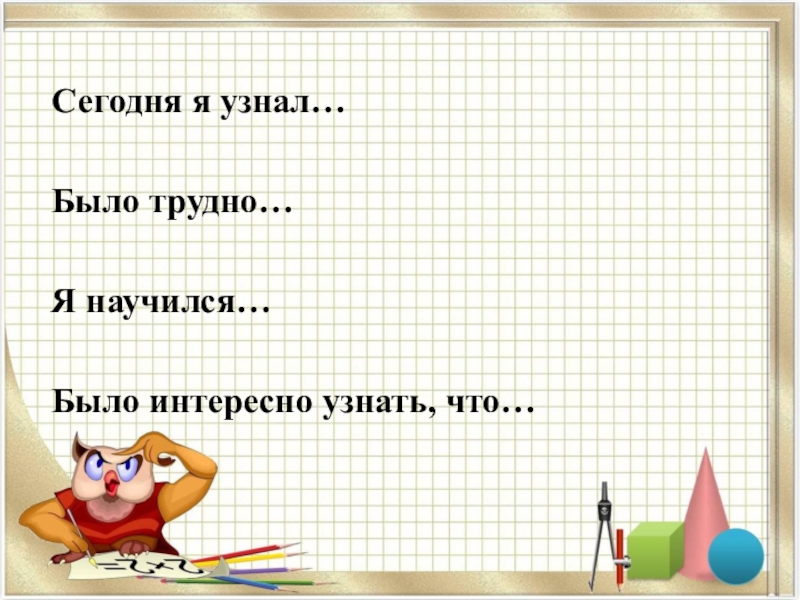 Сегодня я узнал…Было трудно…Я научился…Было интересно узнать, что…