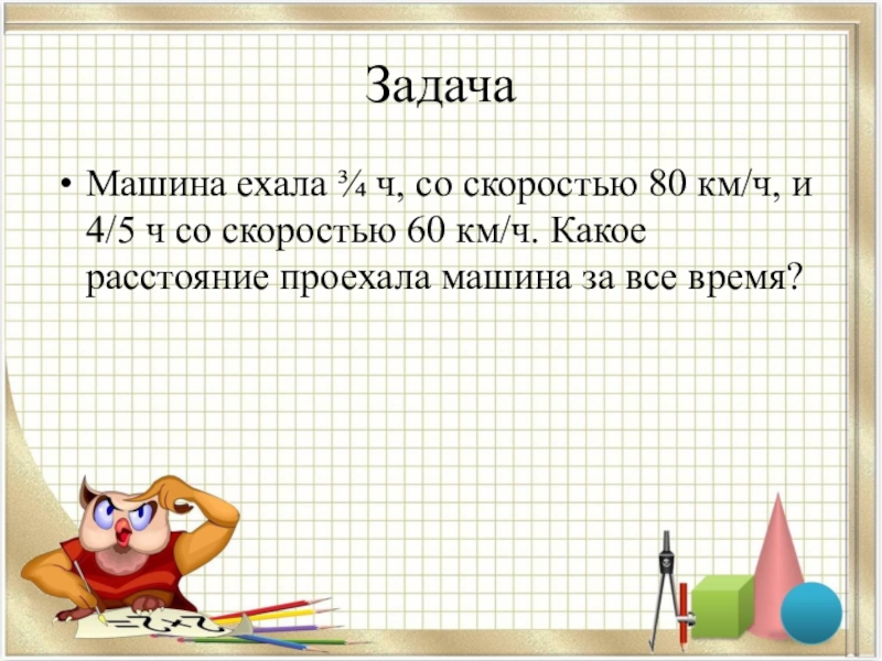 Машина ехала ¾ ч, со скоростью 80 км/ч, и 4/5 ч