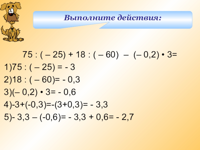 - 3,3 – (-0,6)= - 3,3 + 0,6= - 2,7