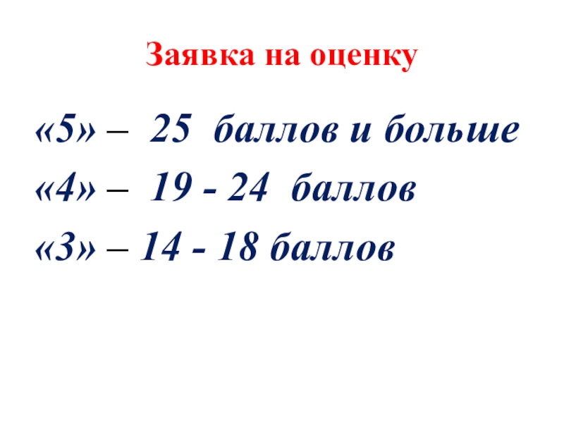 Слайд 2Заявка на оценку: