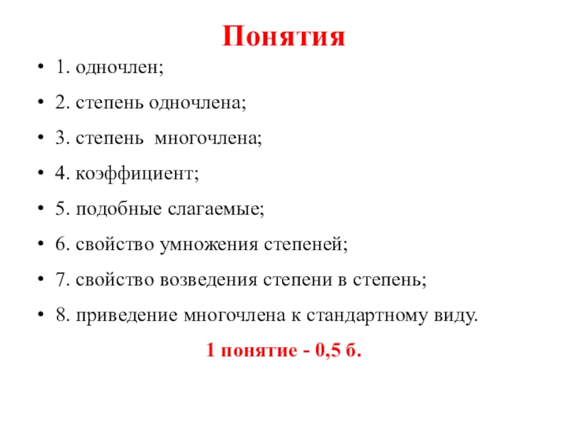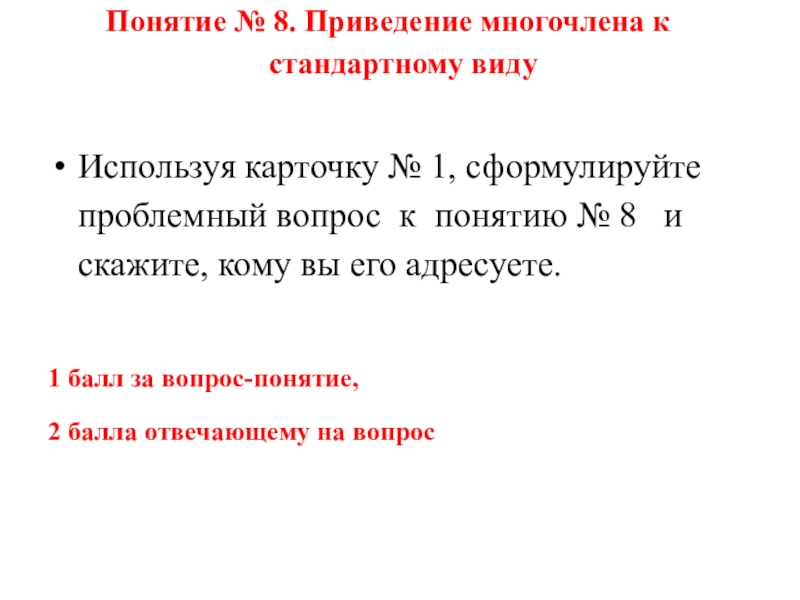 Слайд 5Понятие № 8. Приведение многочлена к стандартному виду