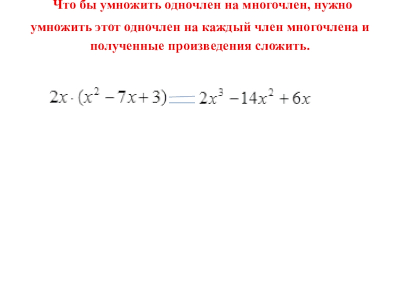 Слайд 15 Что бы умножить одночлен на многочлен, нужно умножить этот одночлен