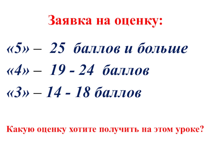 Какую оценку хотите получить на этом уроке?