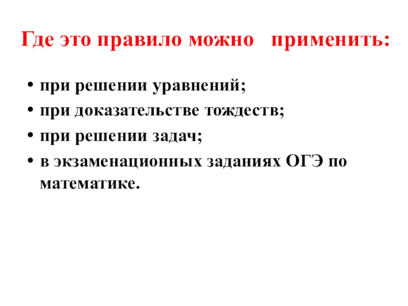 при решении уравнений;
