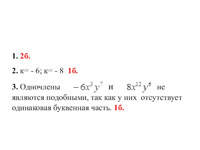3. Являются ли эти одночлены подобными слагаемыми? Ответ обоснуйте. 1 б.