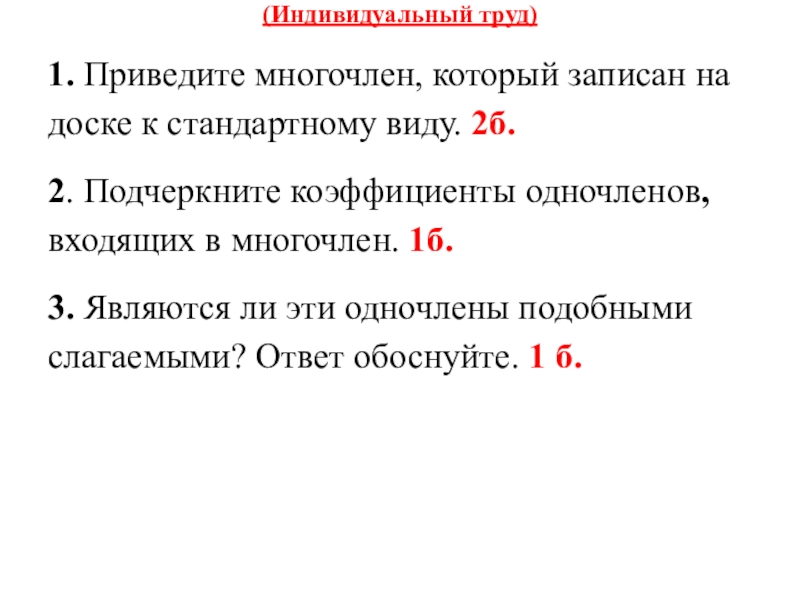 1. Приведите многочлен, который записан на доске к стандартному виду.