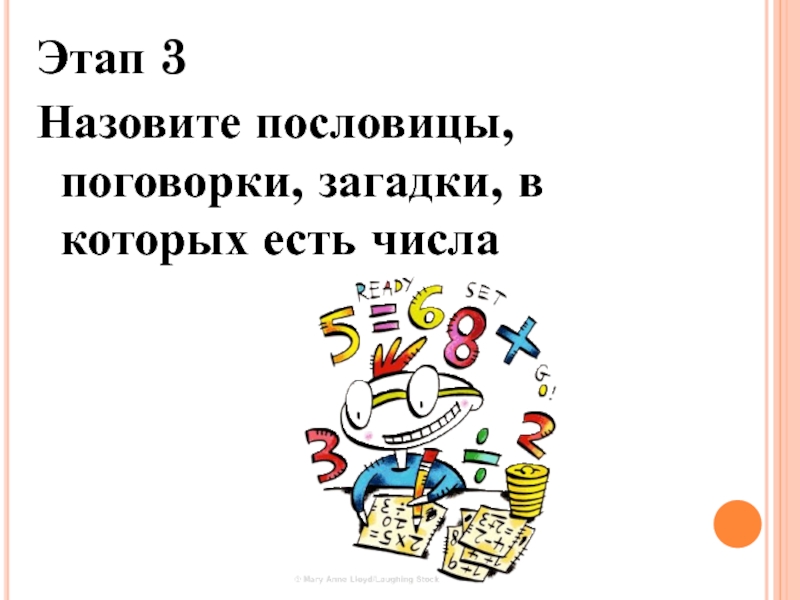 Этап 3Назовите пословицы, поговорки, загадки, в которых есть числа