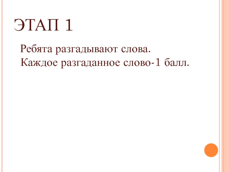 ЭТАП 1 Ребята разгадывают слова. Каждое разгаданное слово-1 балл.