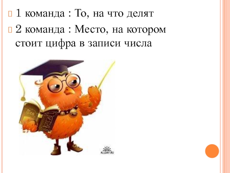 1 команда : То, на что делят2 команда : Место, на котором стоит цифра в записи числа