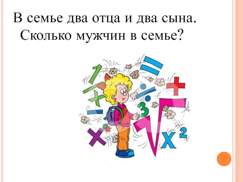 Слайд 10В семье два отца и два сына. Сколько мужчин в семье?