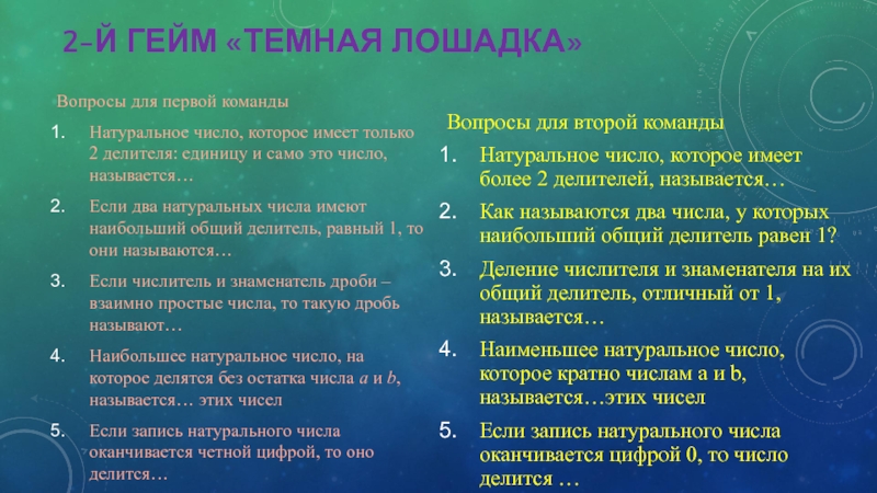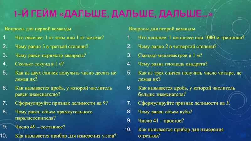 Вопросы для второй команды