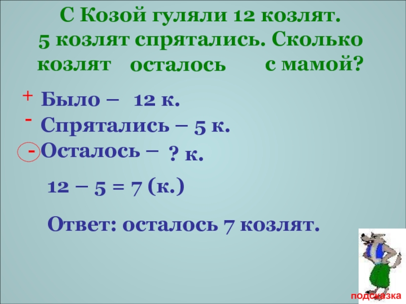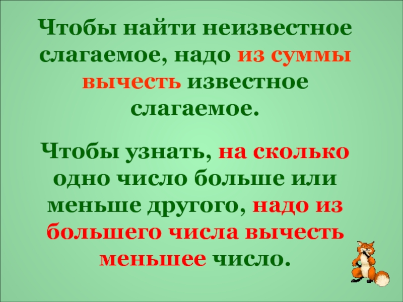 Чтобы найти неизвестное слагаемое, надо из суммы вычесть известное слагаемое.