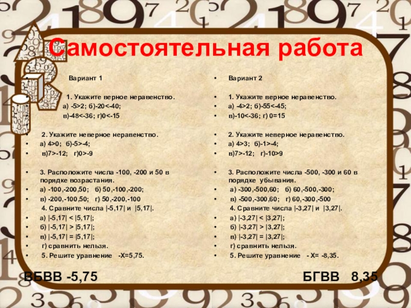 3. Расположите числа -500, -300 и 60 в порядке убывания.
