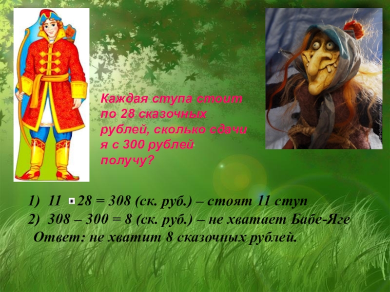 308 – 300 = 8 (ск. руб.) – не хватает Бабе-Яге