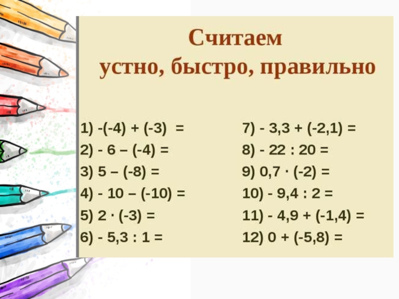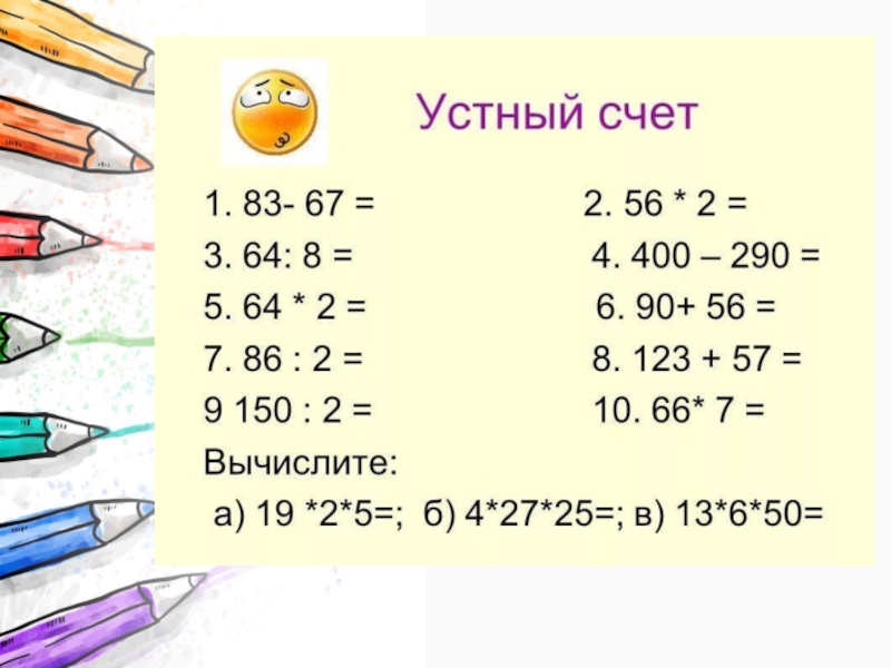 Презентация по математике Устный счет на уроках математики (6 класс) Математика