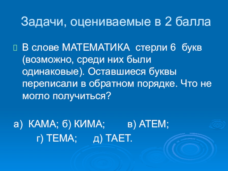 Слайд 25Задачи, оцениваемые в 2 балла