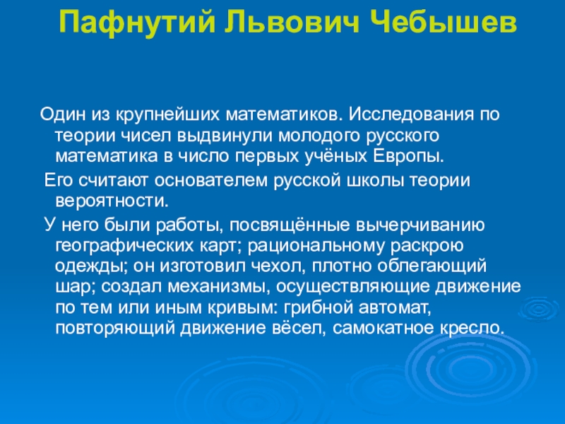 Его считают основателем русской школы теории вероятности.