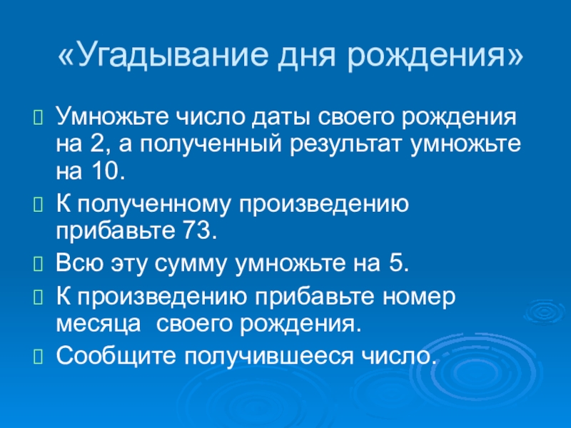 Слайд 26«Угадывание дня рождения»