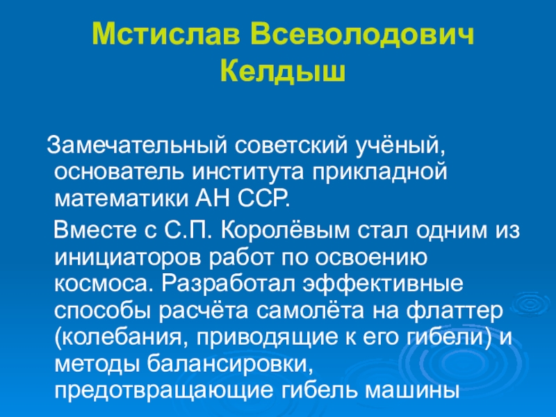 Замечательный советский учёный, основатель института прикладной математики АН