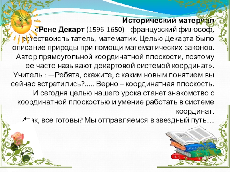 «Рене Декарт (1596-1650) - французский философ, естествоиспытатель, математик. Целью