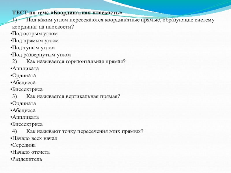 Слайд 6ТЕСТ по теме «Координатная плоскость»