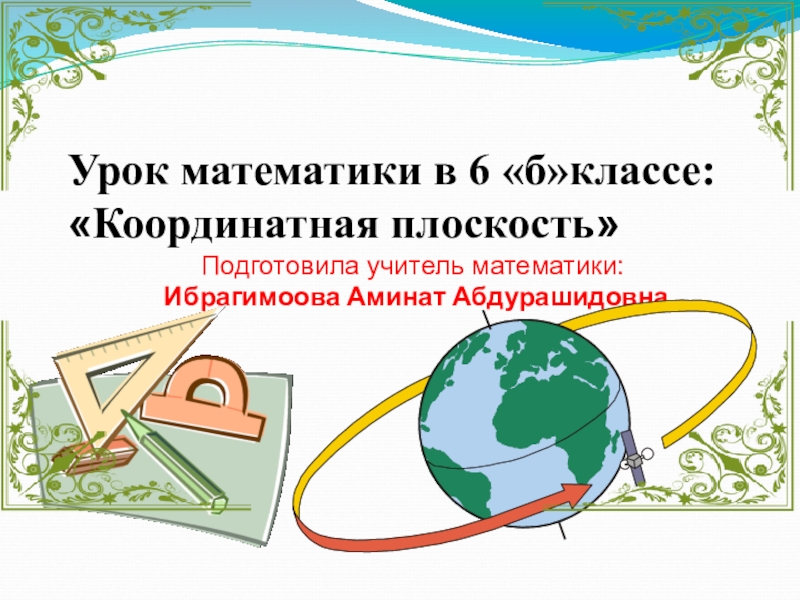Слайд 1Урок математики в 6 «б»классе: «Координатная плоскость»