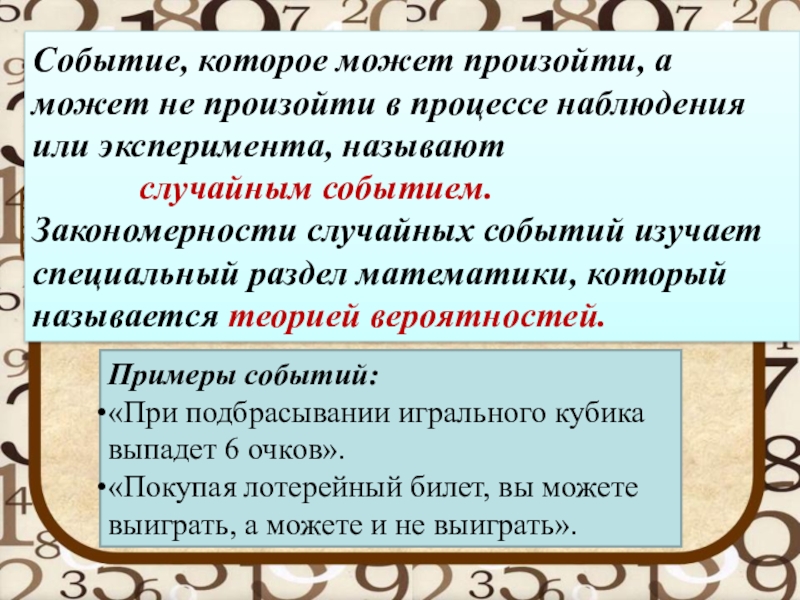 «При подбрасывании игрального кубика выпадет 6 очков».