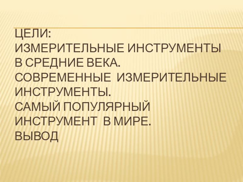 Слайд 2Цели: измерительные инструменты в средние века. Современные измерительные инструменты. Самый популярный инструмент в мире. Вывод