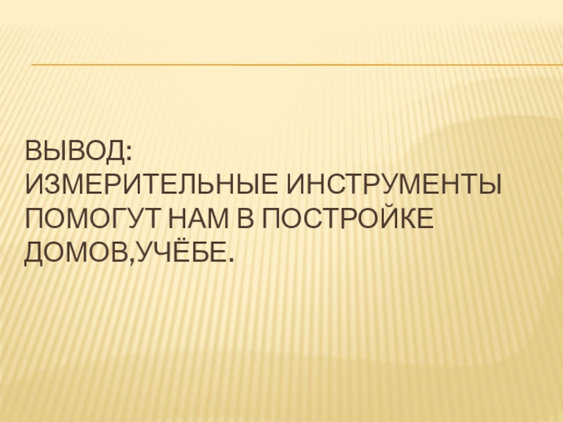 Слайд 11ВЫВОд: Измерительные инструменты помогут нам в постройке домов,учёбе.