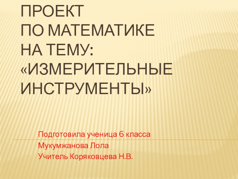 Проект по математике на тему: «измерительные инструменты»Подготовила ученица 6 класса Мукумжанова ЛолаУчитель Коряковцева Н.В.