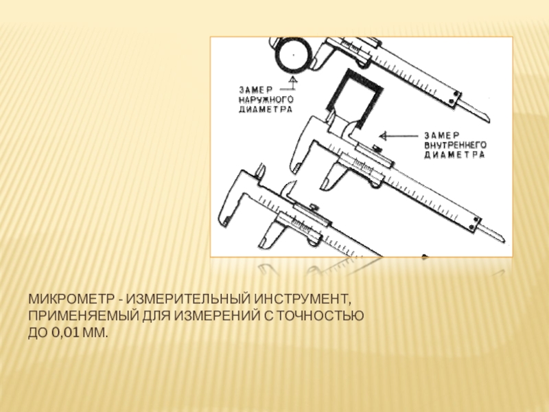 Слайд 8Микрометр - измерительный инструмент, применяемый для измерений с точностью до 0,01