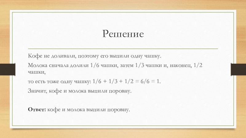 то есть тоже одну чашку: 1/6 + 1/3 + 1/2 = 6/6 = 1.