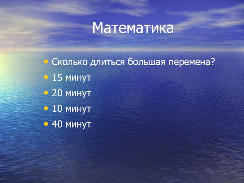 МатематикаСколько длиться большая перемена?15 минут20 минут10 минут40 минут