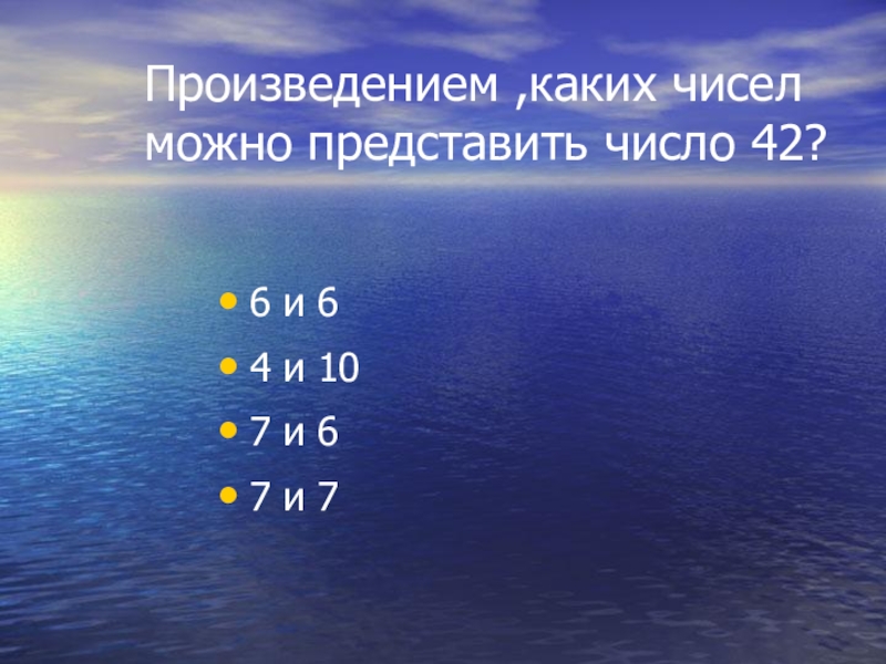 Слайд 16Произведением ,каких чисел можно представить число 42?