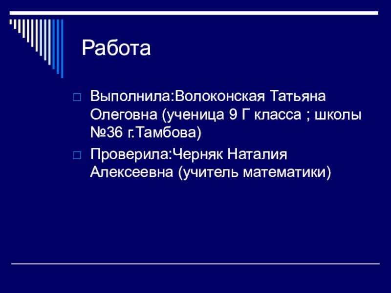 Выполнила:Волоконская Татьяна Олеговна (ученица 9 Г класса ; школы №36