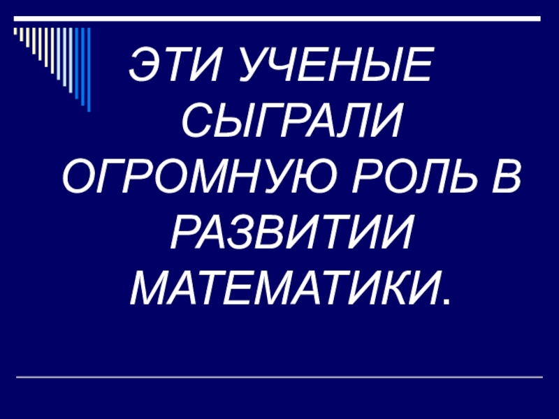 Слайд 2ЭТИ УЧЕНЫЕ СЫГРАЛИ ОГРОМНУЮ РОЛЬ В РАЗВИТИИ МАТЕМАТИКИ.