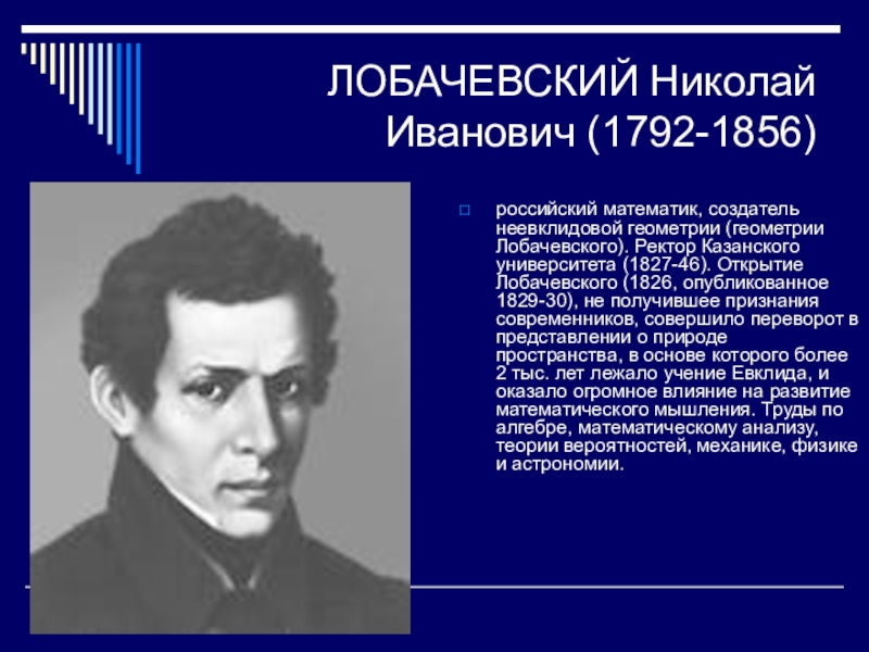 Слайд 12ЛОБАЧЕВСКИЙ Николай Иванович (1792-1856)