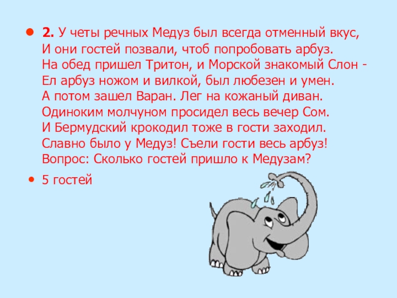 Вопрос: Сколько гостей пришло к Медузам?