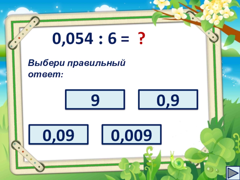 Слайд 180,054 : 6 =