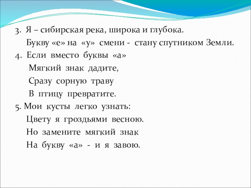 3. Я – сибирская река, широка и глубока.