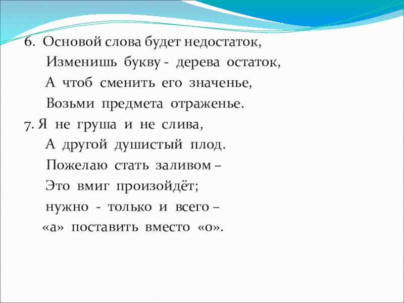 6. Основой слова будет недостаток,