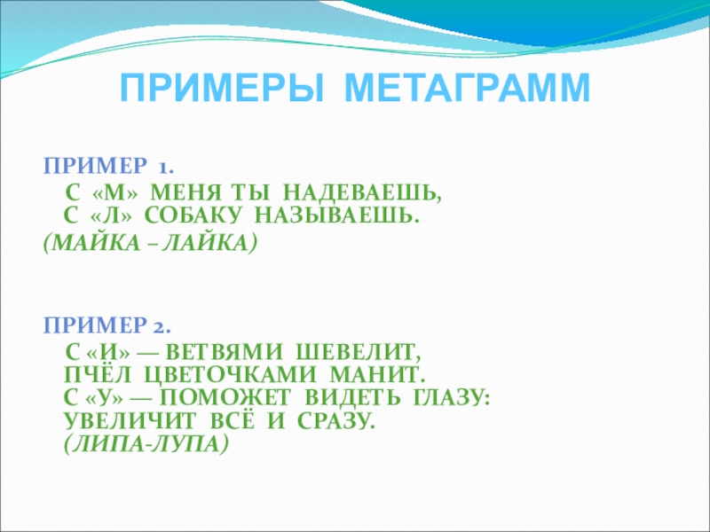 Слайд 9ПРИМЕРЫ МЕТАГРАММ