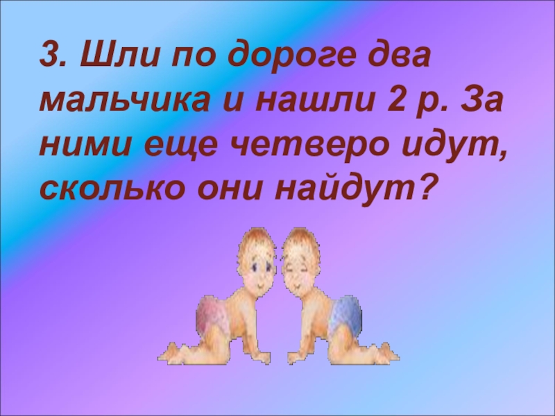Слайд 83. Шли по дороге два мальчика и нашли 2 р. За