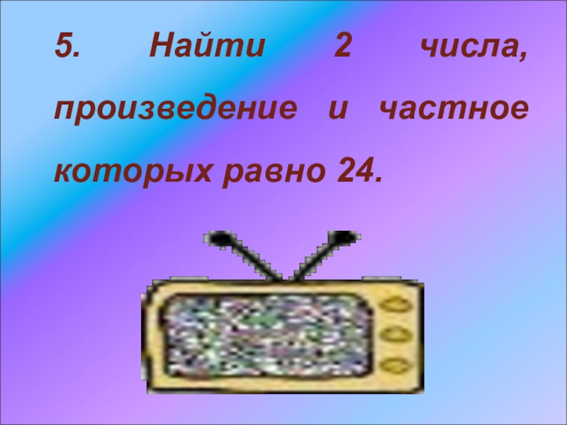 Слайд 125. Найти 2 числа, произведение и частное которых равно 24.